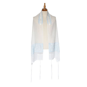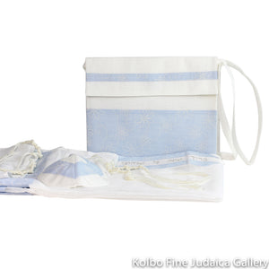 This tallit is handwoven by a family-owned Israeli company. The sheer tallit and bag paired with a kippah all have beautiful light blue detail. It is a perfect gift for...