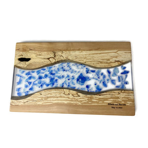 Customize this challah board with your wedding shards embedded in the natural, food-safe resin for a unique gift and family heirloom. A lovely gift for newlyweds to keep and remember...